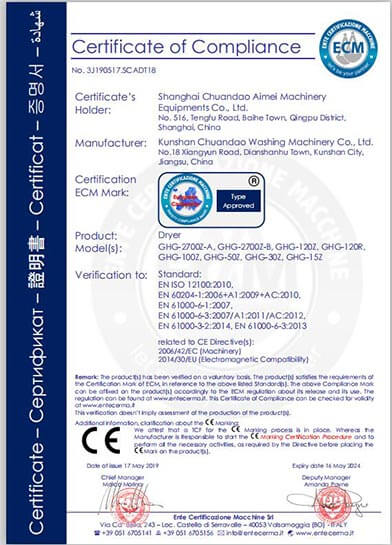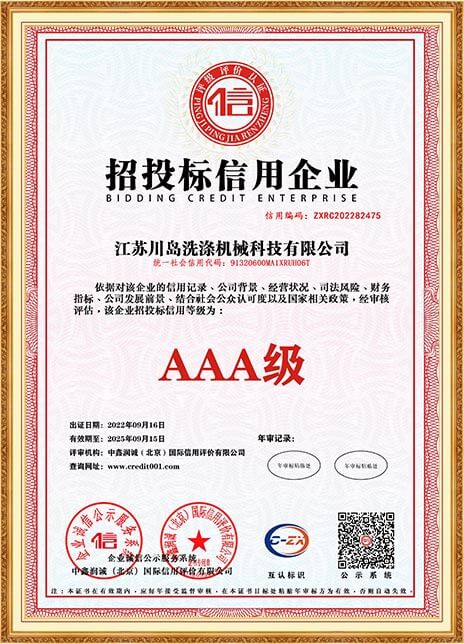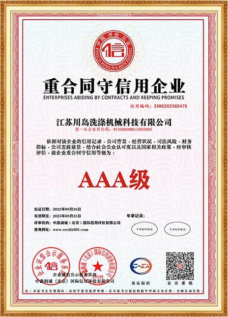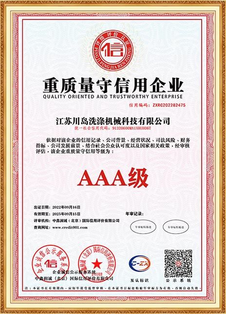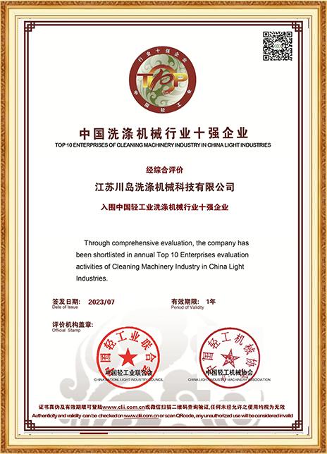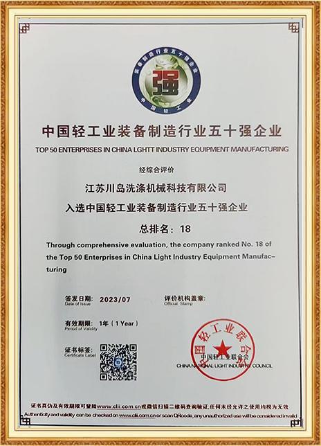 川島近年來獲得多項權威標準和認證,諸如中國洗滌機械行業(yè)十強企業(yè),中國輕工業(yè)裝備制造行業(yè)五十強企業(yè),AAA級信用企業(yè),韓國KC、歐盟KC證書,多項國家專利等。
